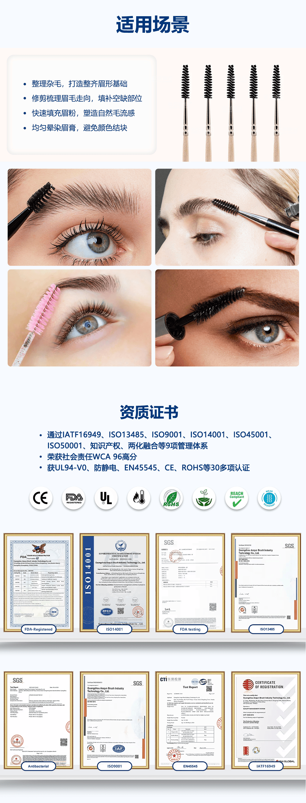 - 應(yīng)用范圍:整理雜毛,打造整齊眉形基礎(chǔ)。修剪梳理眉毛走向,填補空缺部位快速填充眉粉,塑造自然毛流感。均勻星染眉膏